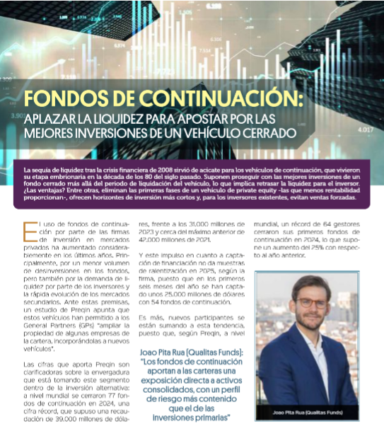 Alongside João, various industry experts addressed the evolution and outlook of continuation funds in the Funds Society report. A joint effort to bring readers closer to the latest trends in these vehicles, whose high level of complexity means they are not always the most optimal solution. The key lies in aligning interests that are often difficult to reconcile, while at the same time addressing governance, valuation and execution challenges.